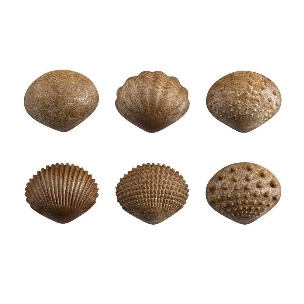 The set contains 36 tactile shells, 2 of each in 6 different tactile finishes and 3 sizes.