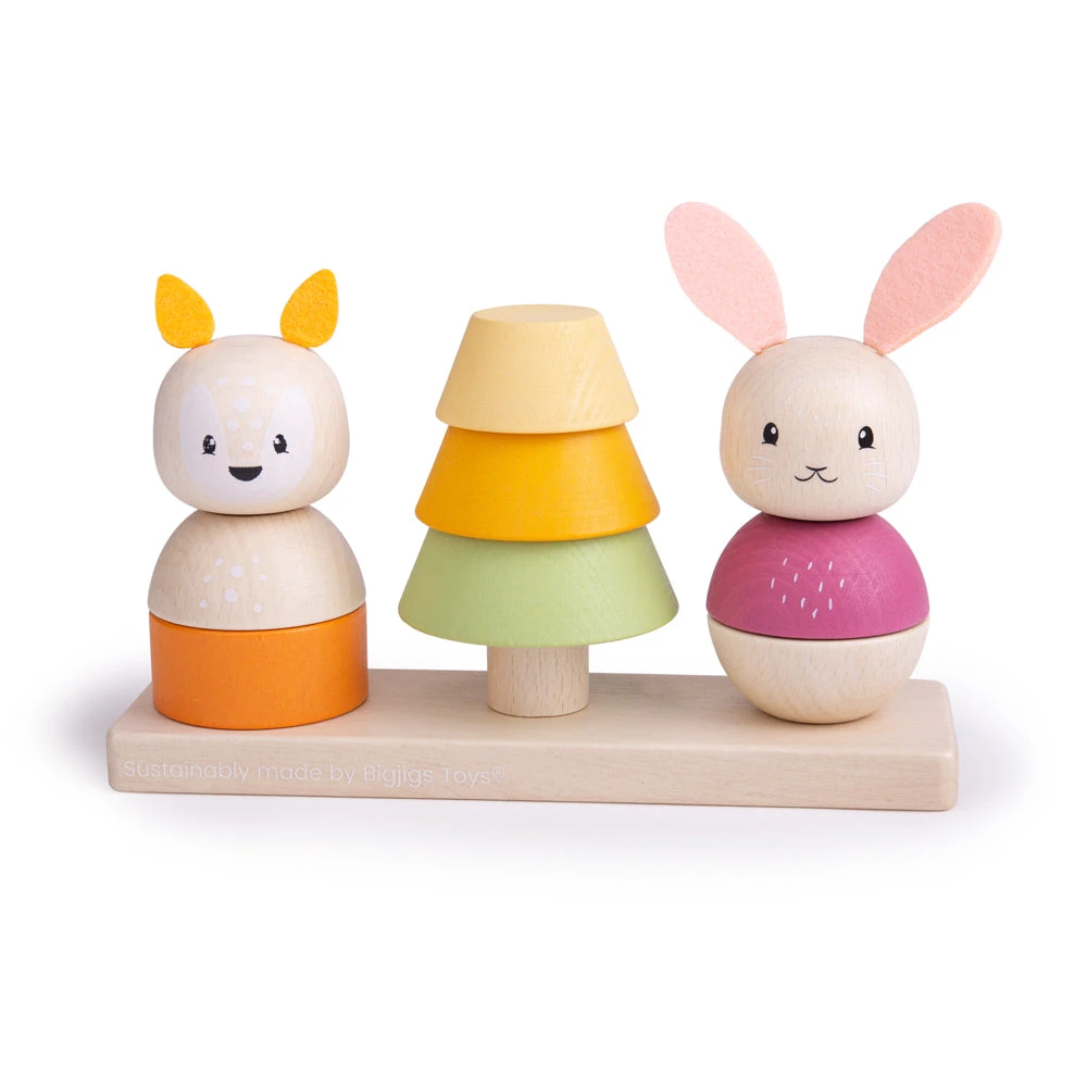 Stack and enjoy! Our Forest Stacker, made from responsibly-obtained wood from Certified woodlands, boasts two endearing rabbit and fox figures and a stackable pine tree.