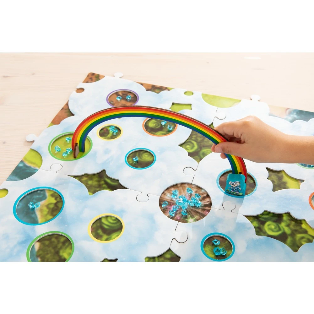 But which rainbow will be the right one to use to get the biggest treasure? The first player to get ahold of three golden cloud crystals wins this sparkly collection game.