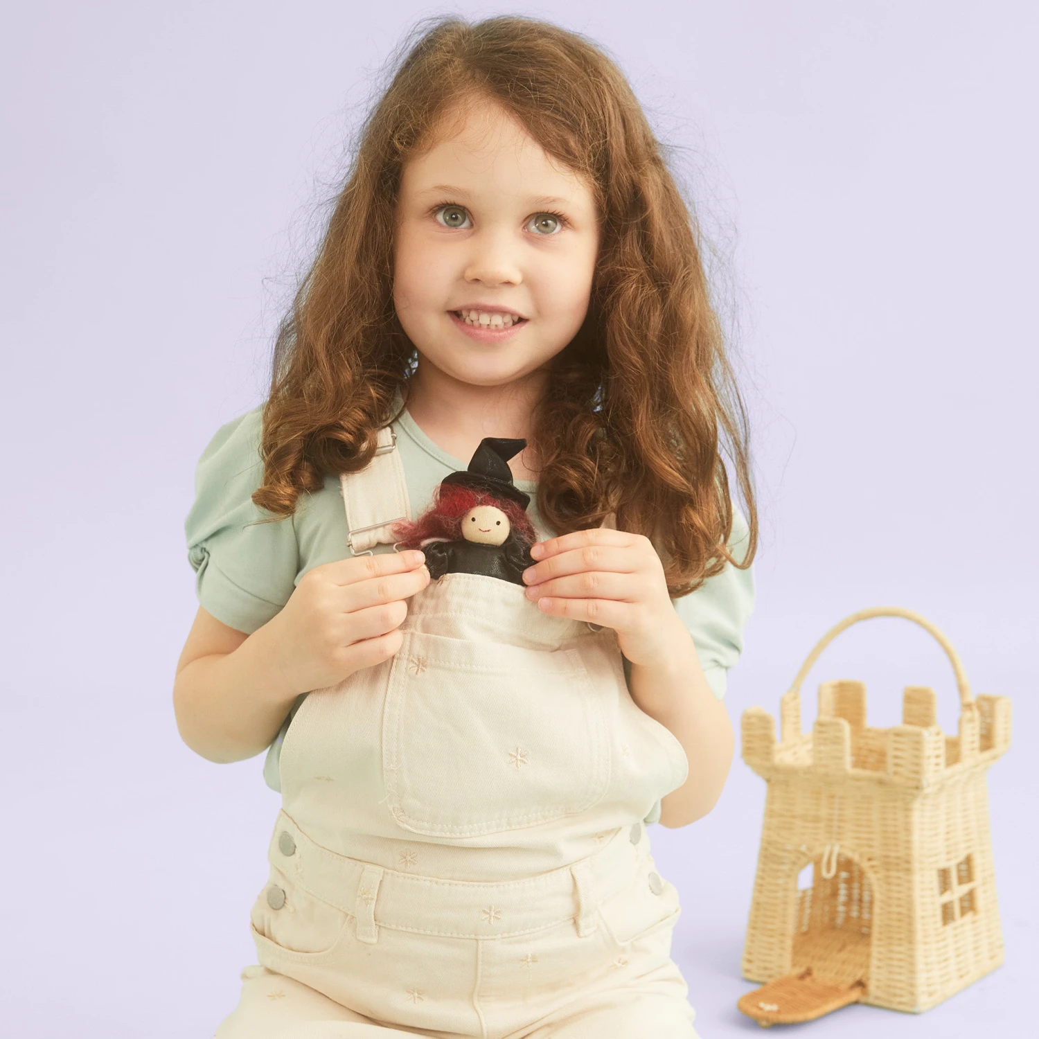 Like all Holdie™ Folk, Wanda The Witch is fully poseable; she wears a removable black as night, witches dress complete with a pointed hat and her trusty magical broom! Made by hand, Wanda is the perfect size pal to pop in a pocket or the palm of a hand. Just add a sprinkle of Imagination to bring your Holdie™ friends to life! Wanda The Witch is collectible and arrives packaged in a beautifully printed cardboard box. Ideal to give as a gift or for small folk to display and re-use at home! Every Witch needs a castle turret to fly from and our Rattan Castle Bag is great for play and doubles as Holdie™ storage too!