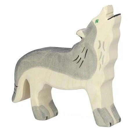 Individually handcrafted in Europe out of maple and beech wood, this Howling Wolf Wooden Figure is a unique piece of art. The little knots, grains and mineral lines are preserved through a water-based non-toxic paint, so that every Wooden Animal Figures is totally unique. A high quality item from Holztiger, one of the best toy companies in Europe, made just for your little one.
