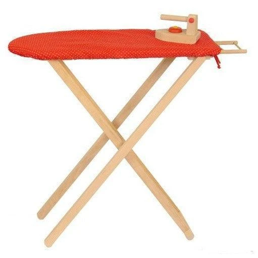 This foldable wooden Ironing Board for role play comes with a bright cover and iron that has an adjustable thermostat for realistic play.