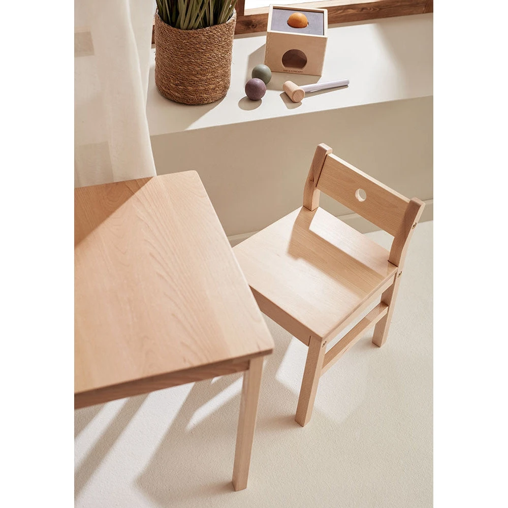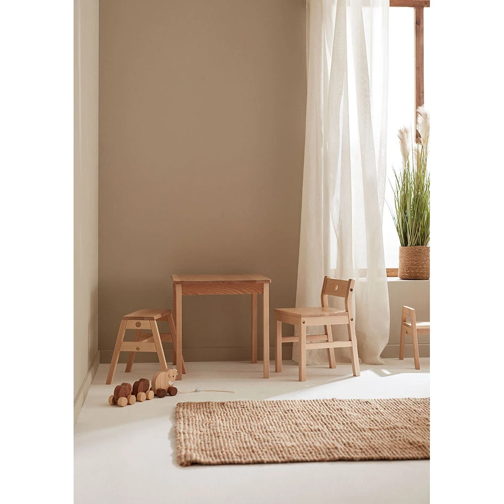 Let the children have their own place in the home where they can do crafts, play games, and draw. Here is our sturdy chair in white beech that is easy to assemble. The seat is 31 cm high and is suitable for children between 3-6 years. It has a low backrest with lumbar support for the kids and fits perfectly with our Saga table. The back legs are angled outwards to give it extra stability. And if that were not enough, it is produced in beautiful Bosnia, in certified wood.