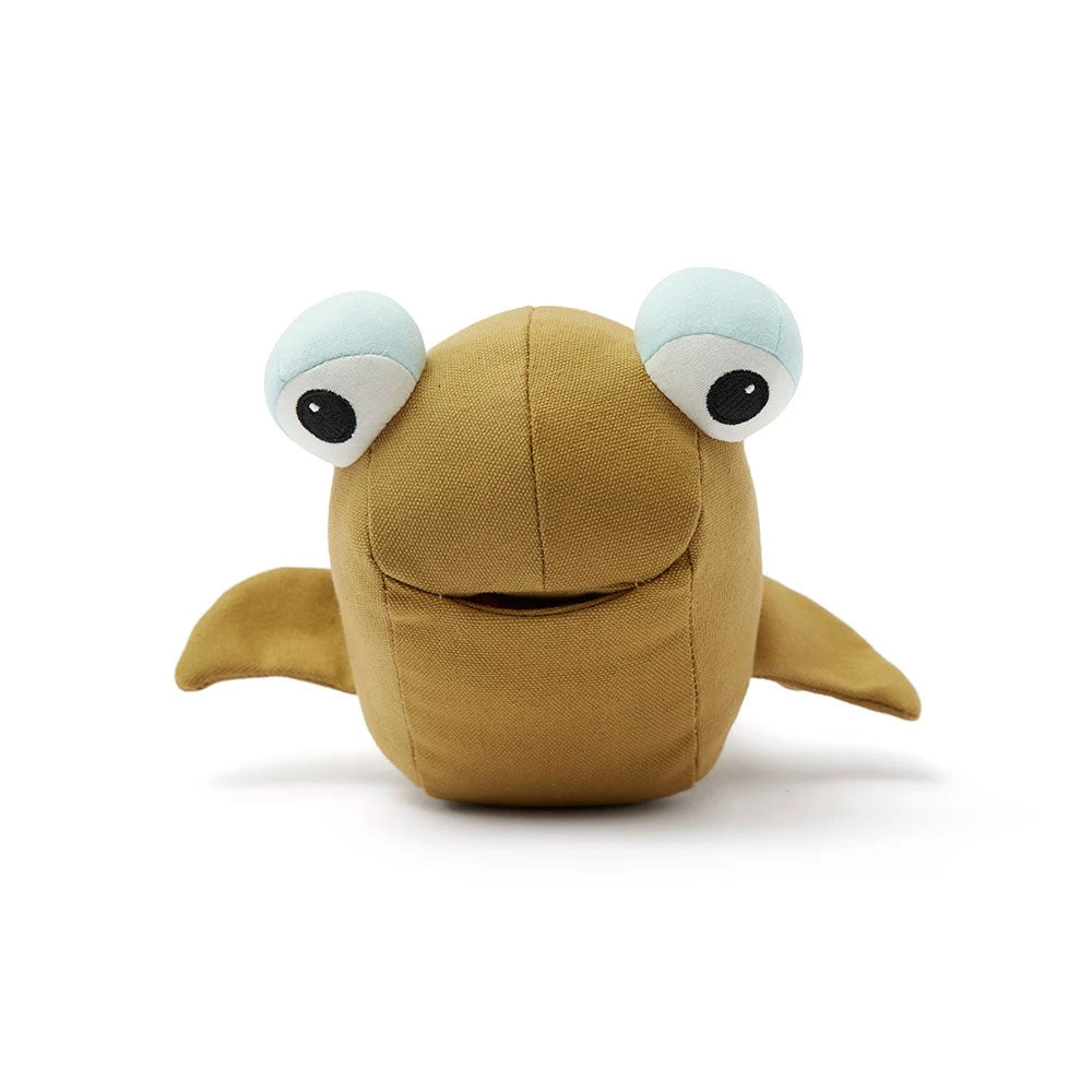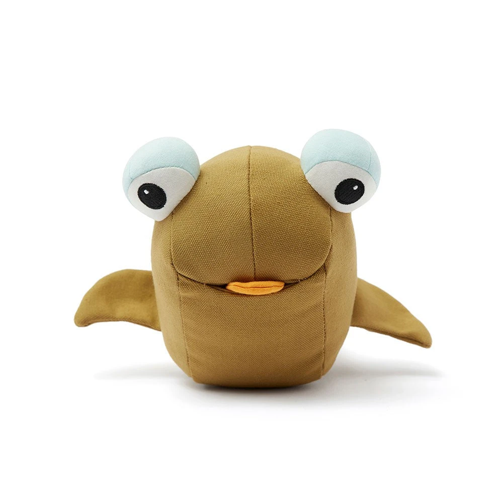 Living both in the water and on land. A happy rascal with a long dangling tongue that constantly looks for his next catch. When he is really sad he will close his mouth and hide his tongue until he is happy again. Made in cotton canvas.