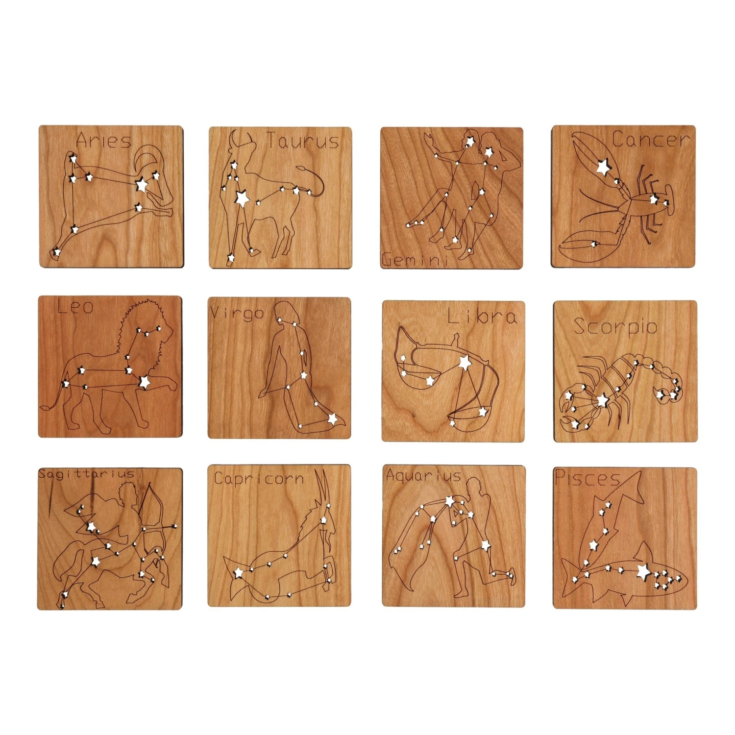Zodiac – Set of 12 constellations- Leo, Aries, Cancer, Pisces, Scorpio, Taurus, Gemini, Aquarius, Capricorn, Libra, Virgo and Sagittarius.