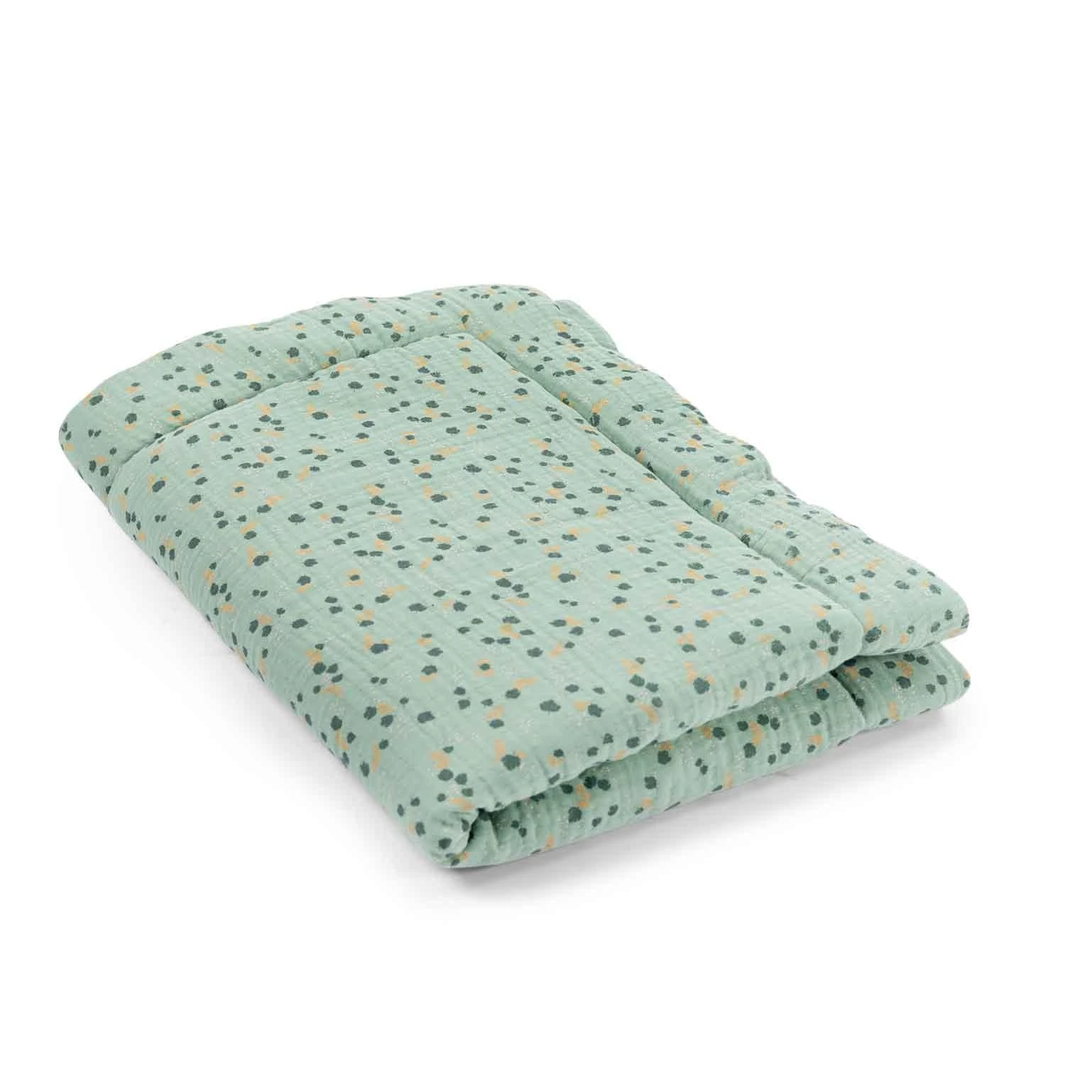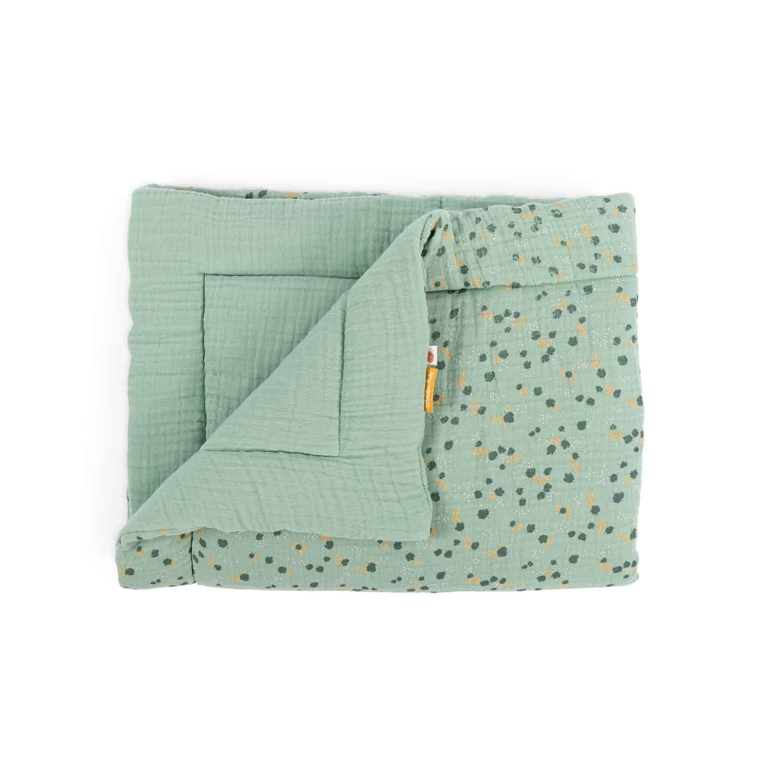 Beautifully crafted with OEKO-TEX® certified muslin, the Trois Petits Lapins Sage Blanket is designed to cocoon your precious little one in warmth and comfort. An exquisite botanical pattern adorns one side, lending its texture and charm to any nursery. Wrap baby in a classic and timeless piece of luxury.