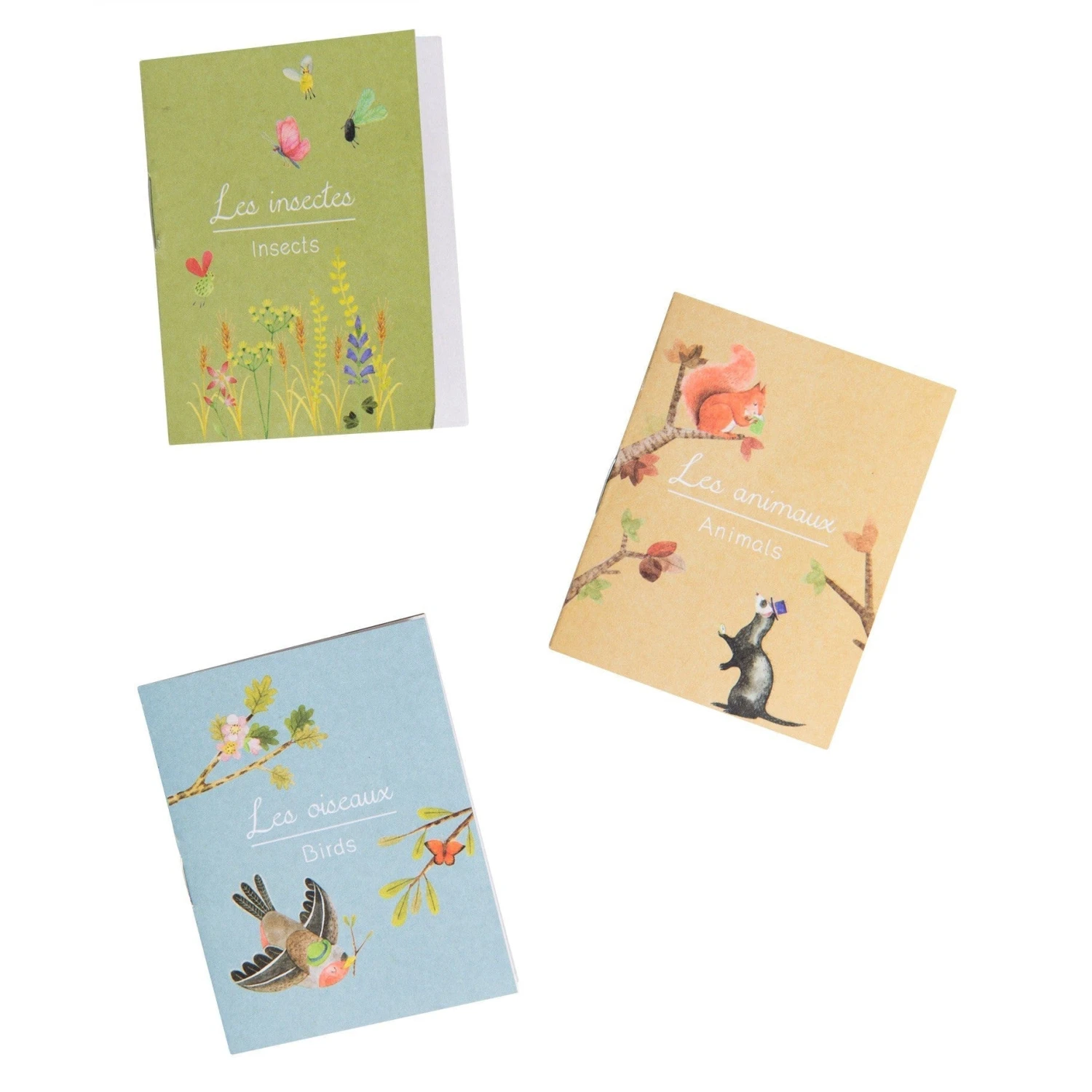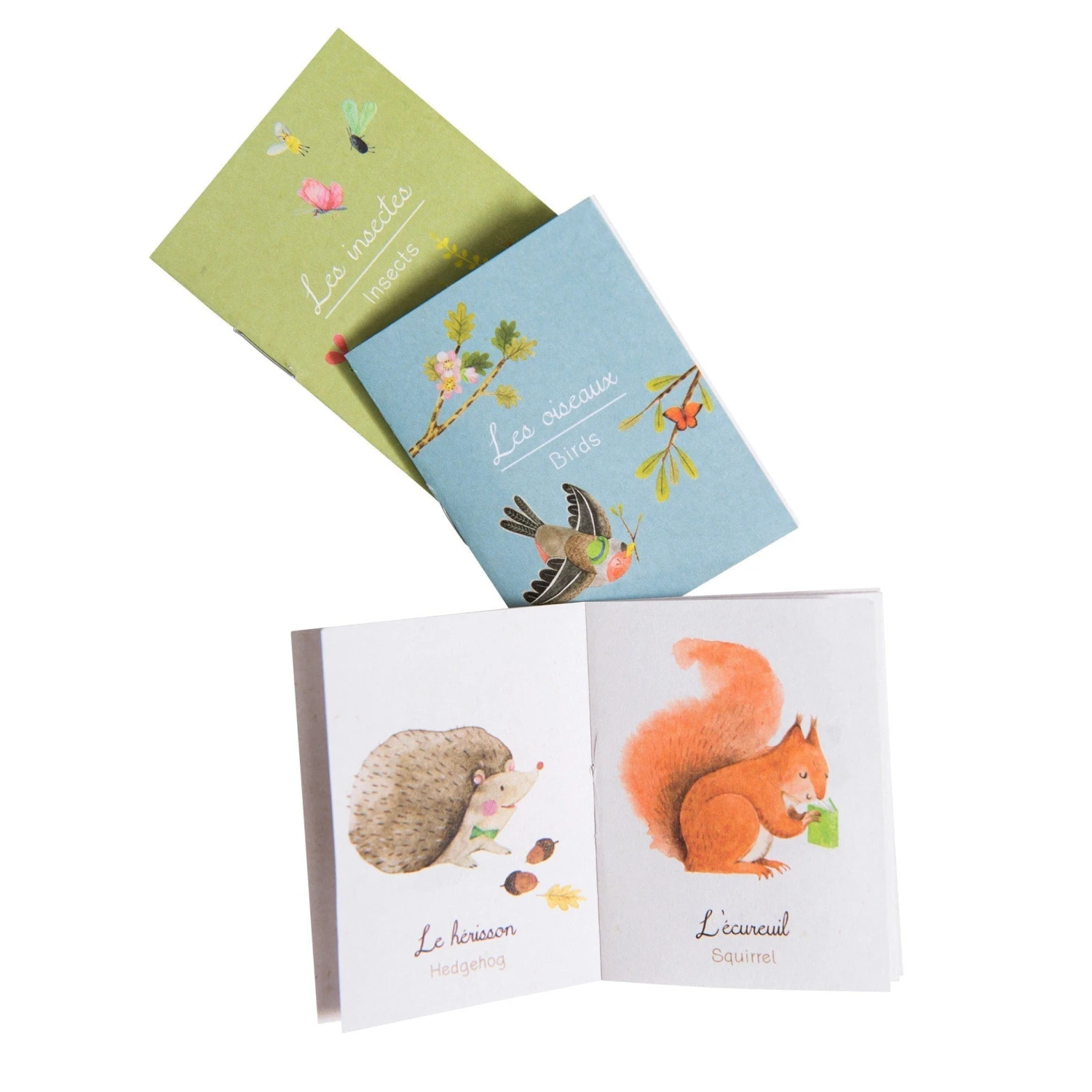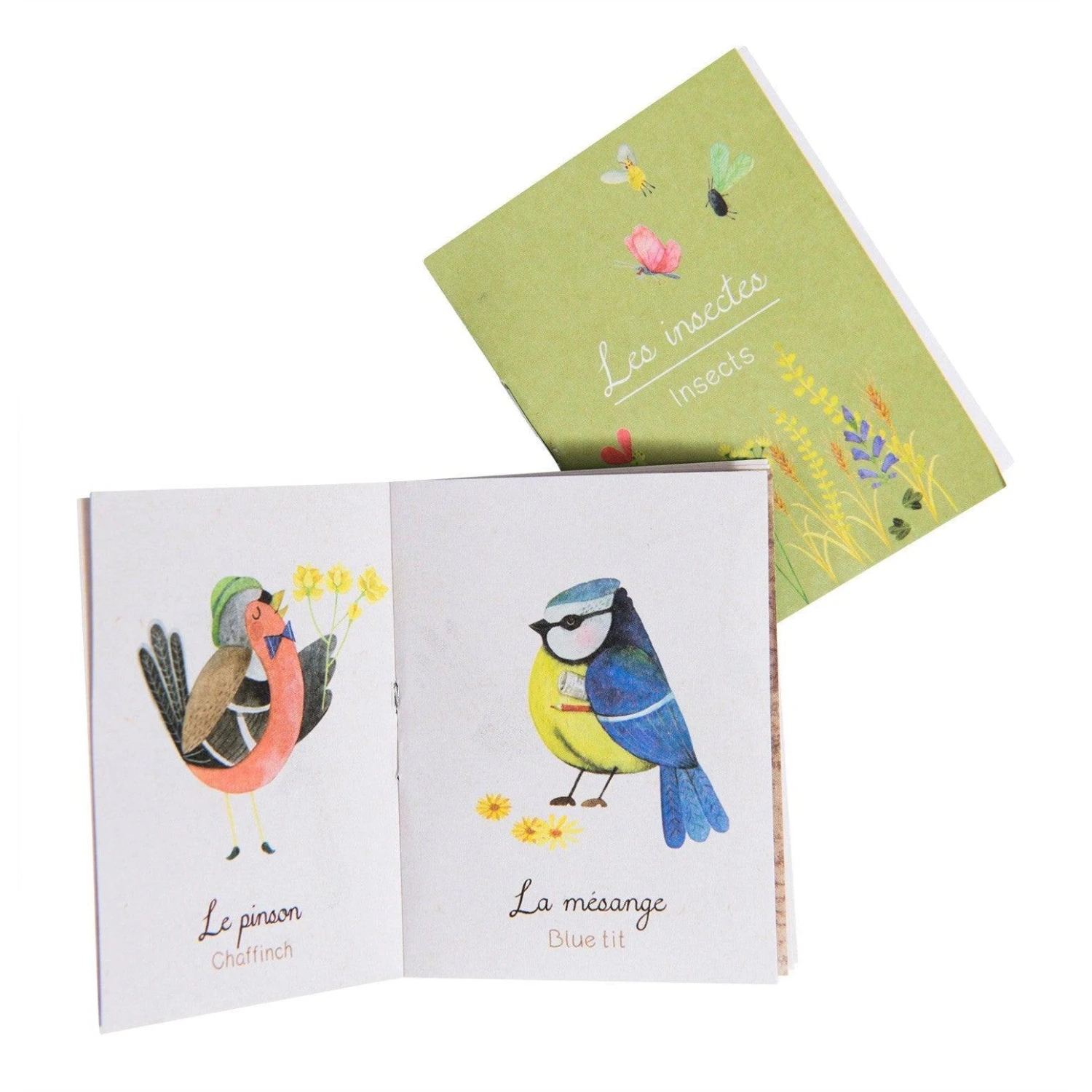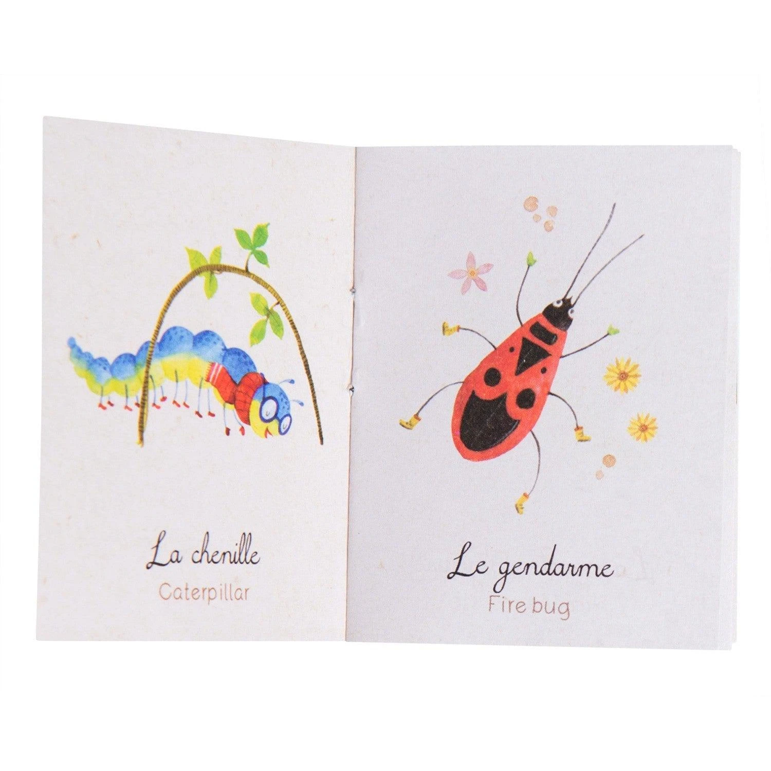 This wonderful world of the infinitely small brings to life fun little animals or insects, each telling their own story: a centipede with its scarf, a cricket in a bowler hat, a swallow with a little neckerchief, a ladybird with a shopping basket, a very affectionate hedgehog play companion… Discover all the treasures of nature through children’s eyes !
