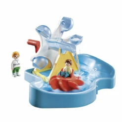 Make a splash with exciting outdoor water adventures! PLAYMOBIL1.2.3 AQUA Water Wheel Carousel has kids spinning with joy. Just one turn of the handle and watch their little figure twirl around the carousel. Little hands can rest easy knowing all the PLAYMOBIL 1.2.3 pieces are too big to swallow.