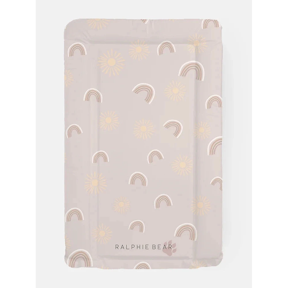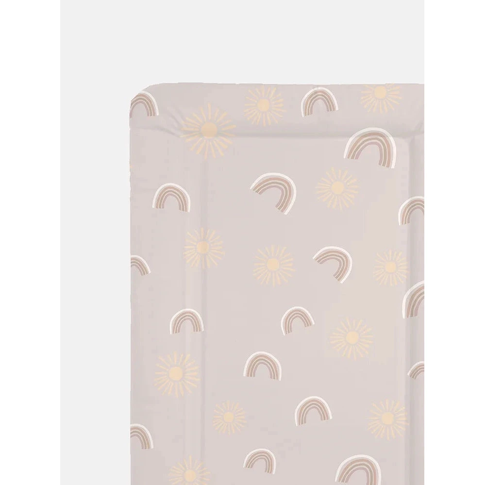 The Rainbows & Sunshine Table Changing Mat boasts a plush and comfortable foam padding, providing optimal comfort for babies.