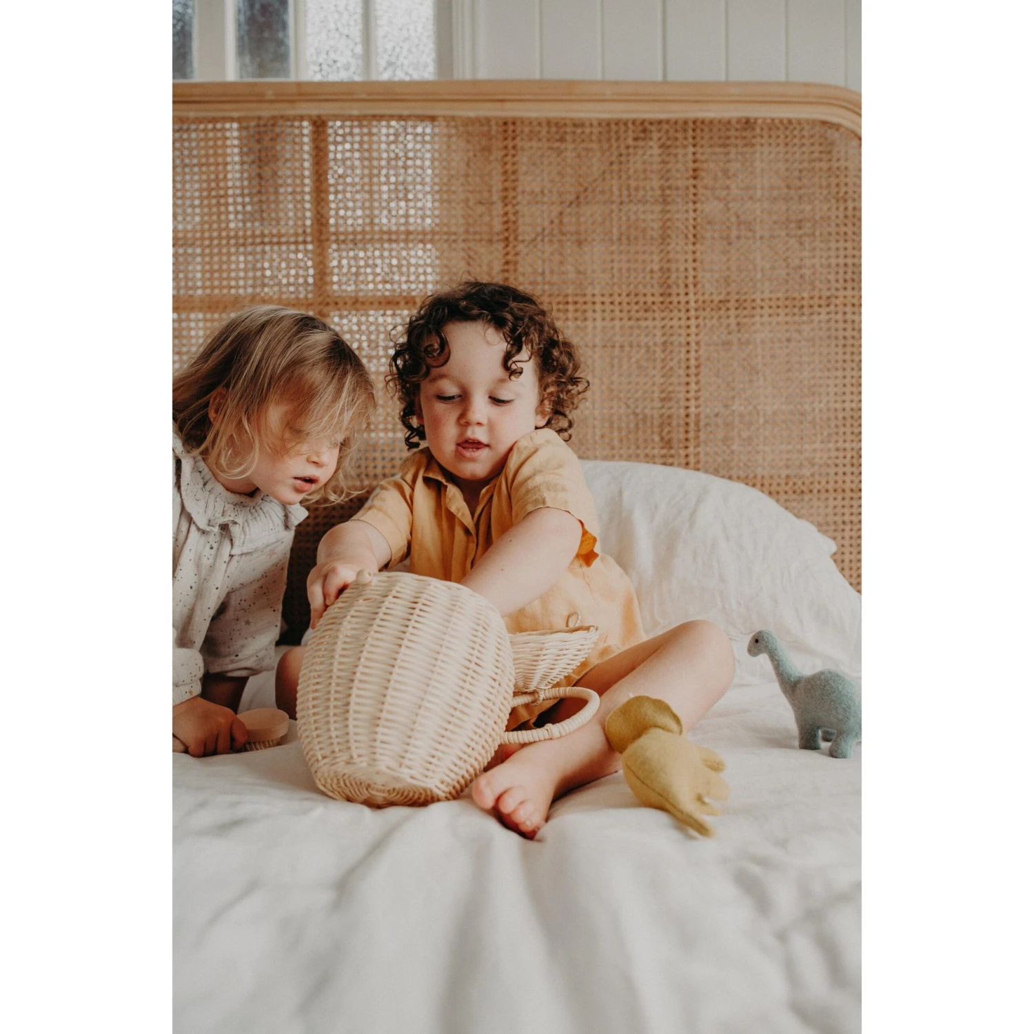 Made from 100% Natural Rattan, The Egg Basket has a flat base and can be displayed upright on tables and shelves.