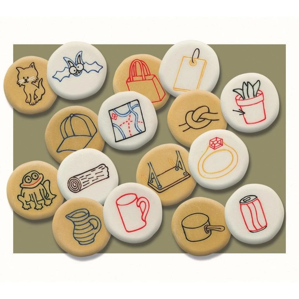 The set comes with two illustrated rhyming pebbles for each of the following families: -ag, -an, -ap, -at, -ing, -og, -ot and –ug. Plenty of opportunities for learning about sounds and rhymes. Pebbles measure 45mm and their engraved design will not fade over time. Safe for age 2+.