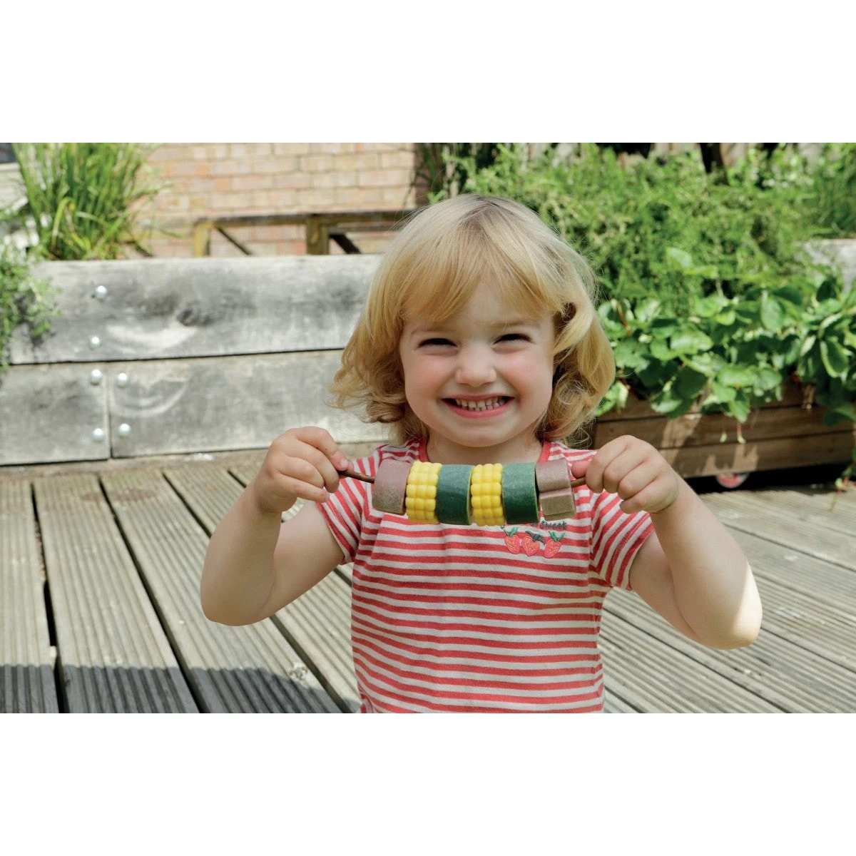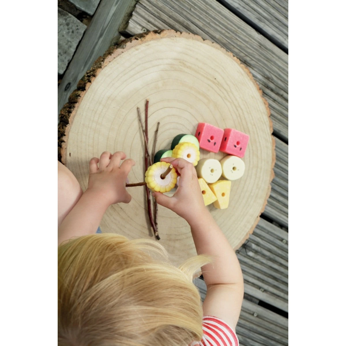 Each tactile set includes twelve stones, two each of the following: banana, courgette, mushroom, pineapple, sweetcorn and watermelon.