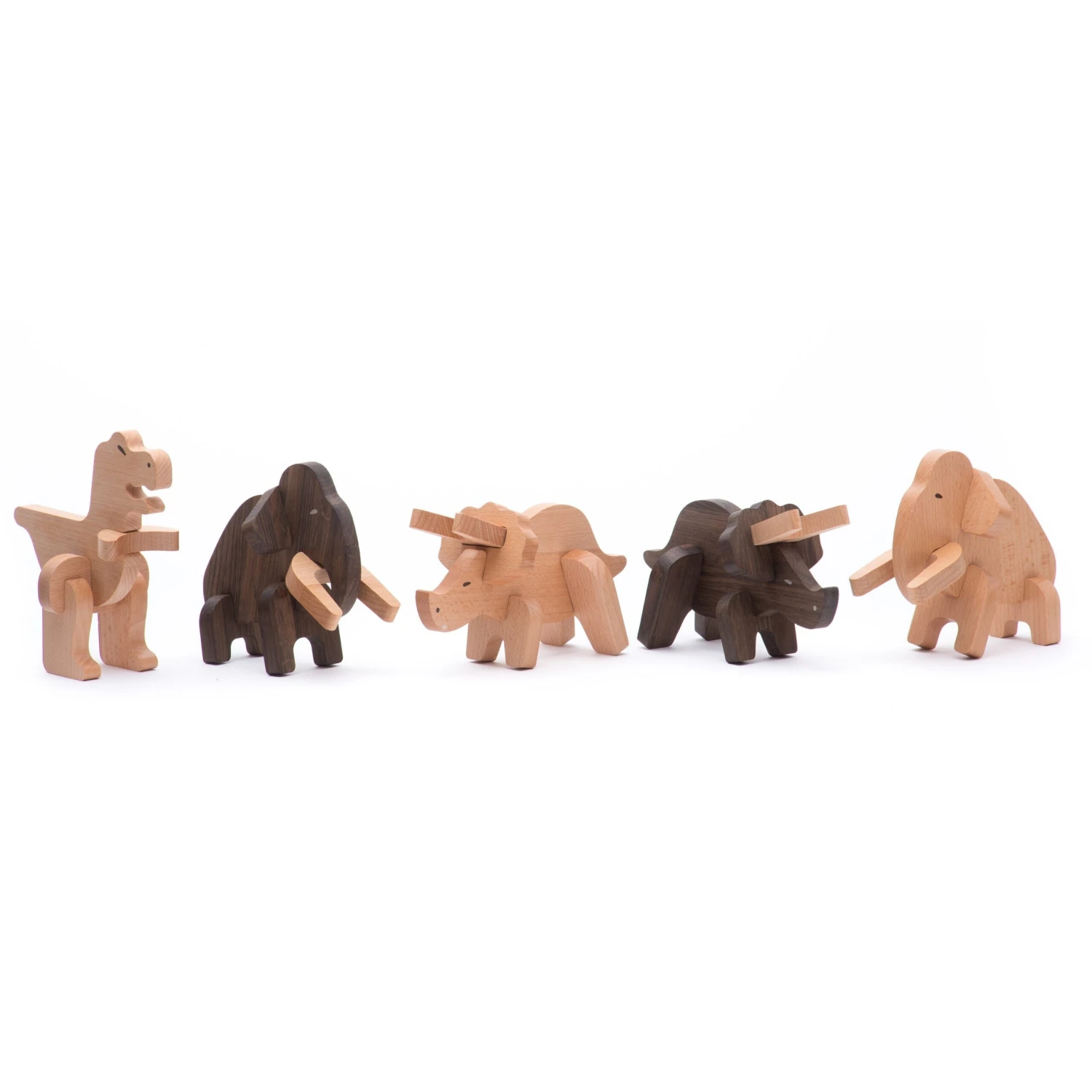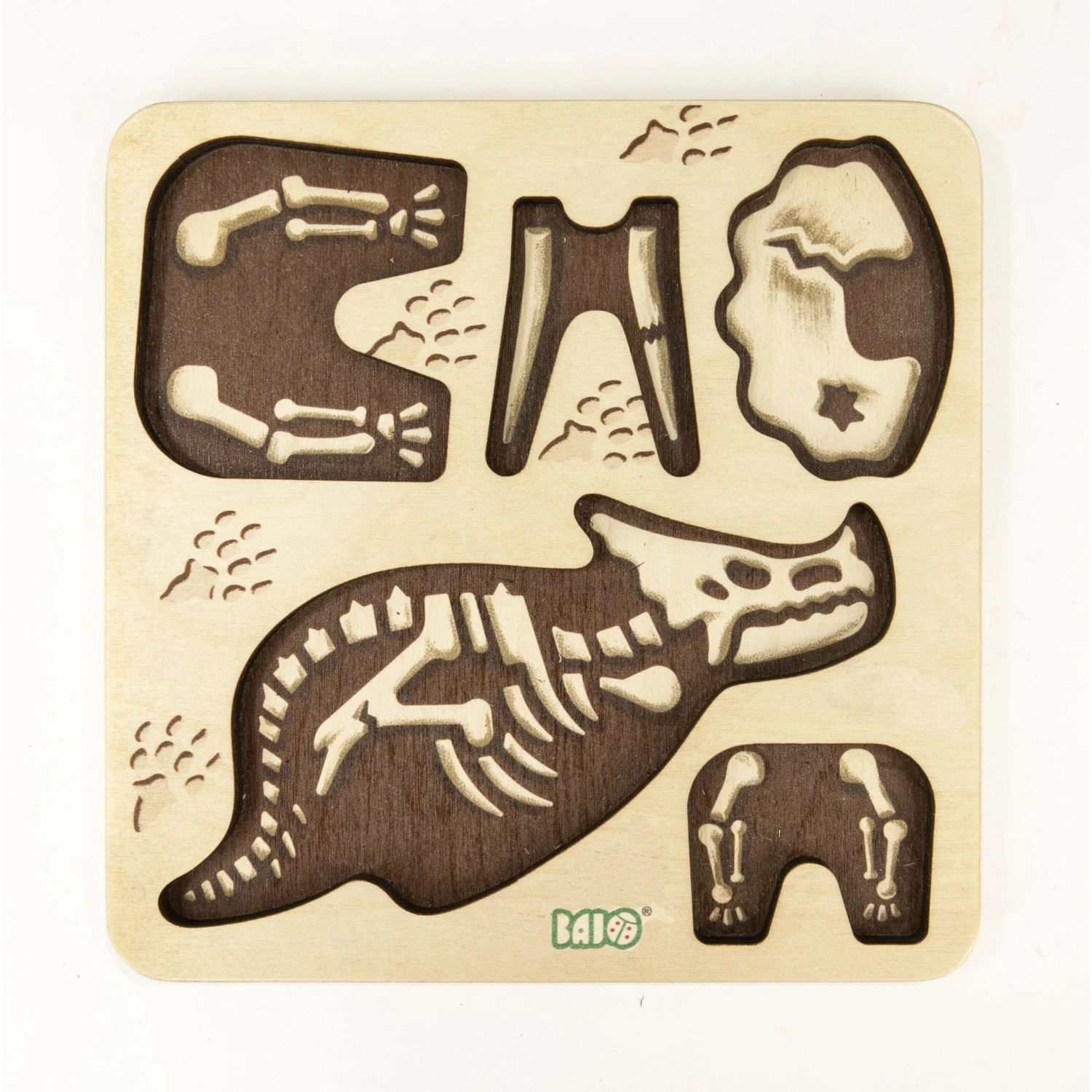These toys consist of a wooden board with figures that can be pulled out to build prehistoric animals using no glue and allowing the child to try and experiment with the imagination. When removed, the pits in the board have printed the bones of those animals. Playing with it develops shape recognition, concentration, goal setting and a sense of achievement and it also tickles the sense of curiosity.