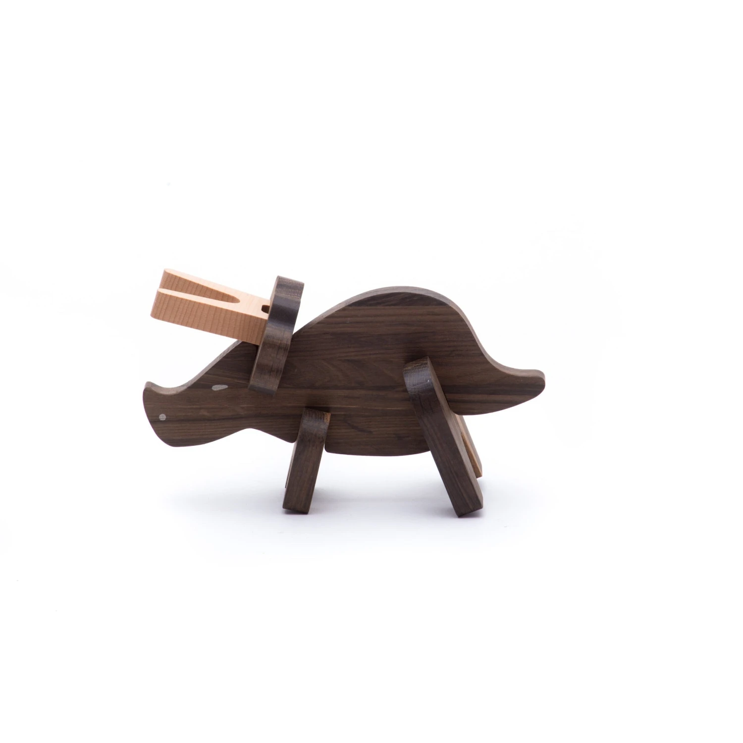 This toy is composed by a board with holes like a paleontology excavation, in them the child will find pieces of wood to build a cool Triceratops. There are many ways in which you can use this toy to play and tickle the curiosity, sorter skills and the never-fading excitement for the dinosaurs and the creatures from the past.