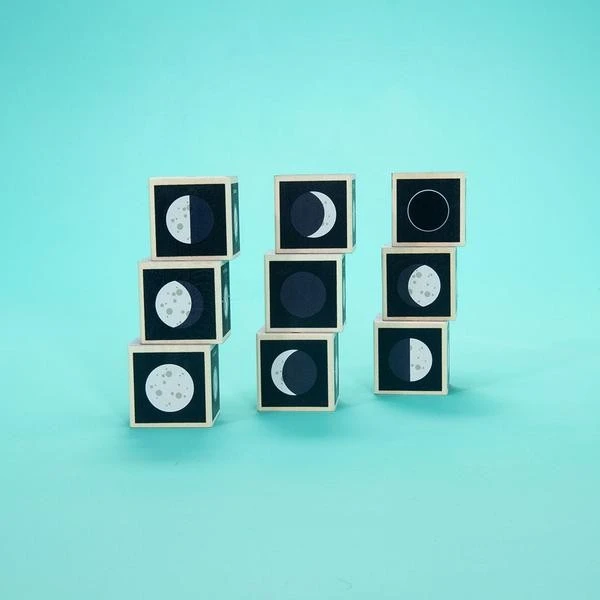 Visualize moon cycles in a multidimensional manner. Will you stack and sort these blocks in their monthly order? Or use them to chart the tides? How else might Uncle Goose moon phase blocks inspire you to look at the sky and dream?