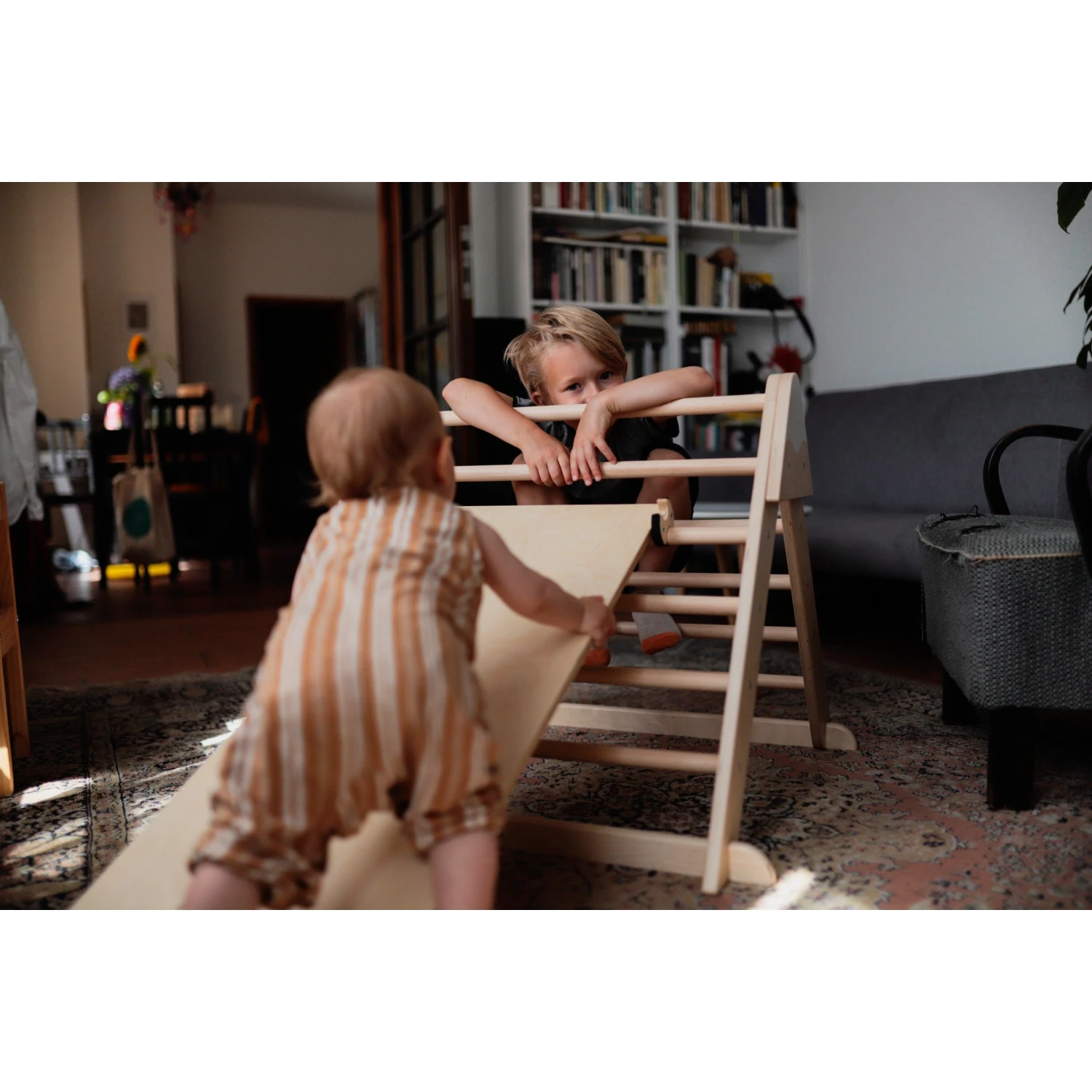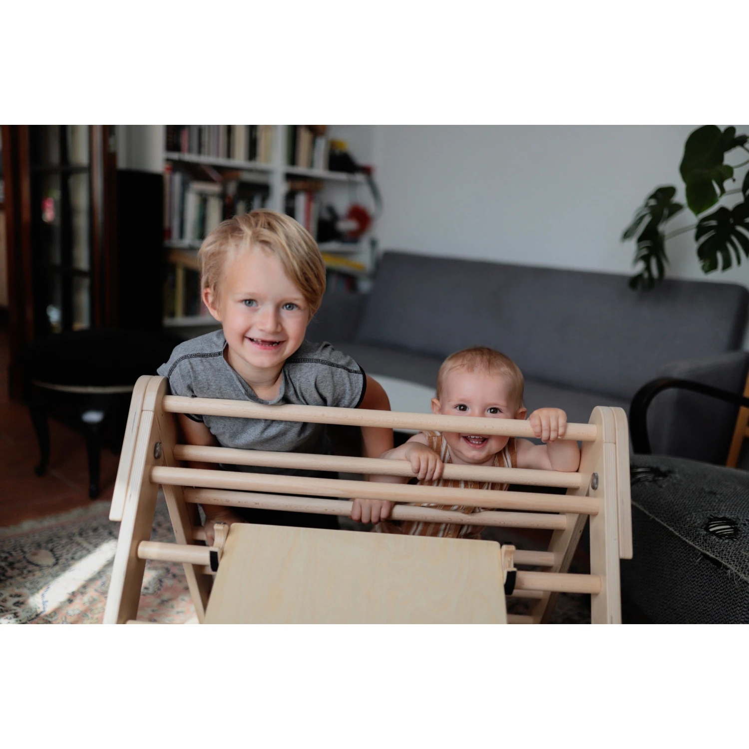 Made in the Czech Republic. Made of birch and beech wood. Wood is a natural product and therefore it can have different shades and knots. The maximum load of the Climbou triangle is 60kg. Maintained with a damp cloth. For indoor use at home.