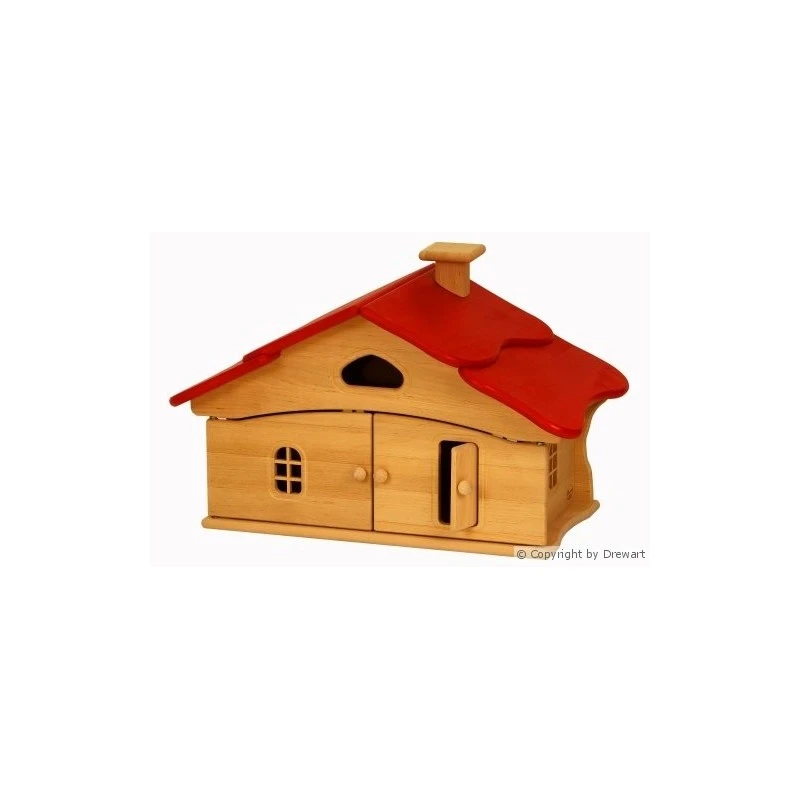 This wooden Witch’s House has an openable front wall and door, as well as a fireplace within.